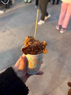 こんにちはあむです🐰 . . この前お友達と桜まつりに行ったのですが . . そこで唐揚げを食べました . . ここの唐揚げがカリッとしていて味が濃くて美味しかったです . . 屋台における唐揚げは本当にガチャ . . 当たりハズレデカイので当たり引けて大ハッピーでした✌️ . . . .