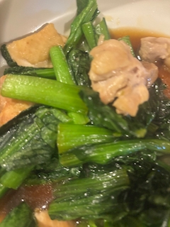 こんばんは!! ほなみです🐻❄️✨ また料理した!! 今回は鶏肉と小松菜のガーリック炒めです🥬 大成功した!!おいしかった!! 野菜たくさん取れるし自炊はやっぱ安いですね☺️ 継続して自炊頑張る💪 ほなみ