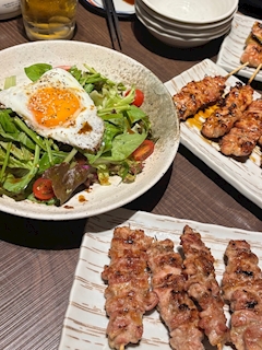 やほん ゆうみです! この前焼き鳥たべにいったよー✨ むさしっていう人気なとこー! 名駅の方は行ったことあったんやけど 栄店ははじめてだた! 名駅よりお店ひろかったー! 種類多いし、安定に何食べても 美味しいし 幸せすぎた😿😿🤍 焼きおにぎり頼んだんやけど お腹苦しすぎて お持ち帰りにしたー 営業終わりたべました😻 個人的にナスチーズがナンバーワンすぎた😌 ごちそうさまでした! でわ
