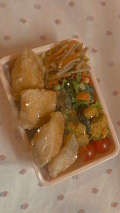 こんばんは🌛💖 うたです👸🏻🩷 最近肉より魚派なので魚をお弁当に入れがち🐟😂 今回は赤魚の唐揚げです😗👍🏻 近くのスーパー骨なしの魚たくさん種類あってて最高🐟💕