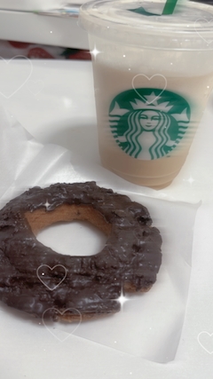 こんにちは💟 うたです👸🏻🩷 すこしまえになかよしさんにもらったスタバギフトで フラペとドーナツ食べました🙂↕️💕 エスプレッソアフォガードフラペチーノ初めてのんだ! やぱあたしはキャラメル派かなあ😌 オールドファッションのチョコドーナツカリカリで美味しかった✌🏻🍩