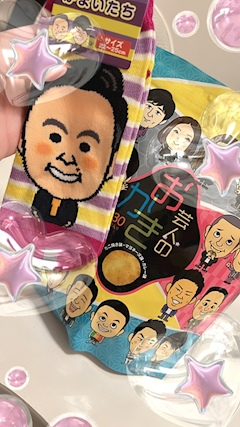 こんにちは💟 うたです👸🏻🩷 ママから大阪の吉本土産もらいました🙂↕️🎀 靴下一瞬やすこかと思ったらかまいたちでした 笑笑 おかきは3種類味あって最近お煎餅系ハマってるから嬉しい😗💖 遠出するといつもお土産買ってきてくれてありがとうすぎる🥹💕