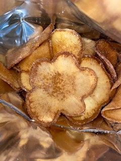 おはようございます🌞 ひまりです🌻 最近甘いもの欲しくなるときがちょいちょいあったから ママがコストコ行くついでにお菓子買ってきてもらった🍪 そのお菓子がおさつどきなんだけど、食べてたらきれいなお花の形がでてきた🌼 だから、思わず写真撮ったよねww