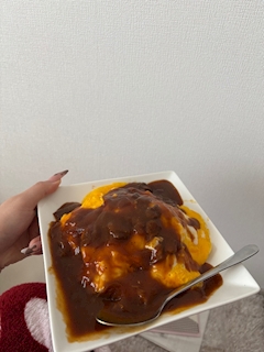 やほ ゆうみです! お昼にオムハヤシ つくた〜🍳 昨日からオムライス食べたかったんやけど 何故かあんまり食欲なくて 今日起きて ぺこぺこやたから つくった🤭 ハヤシライス一人前のレトルト 家にあったからそれかけて完成^^ おいしかった〜 でわ