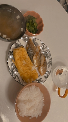 こんばんは うたです👸🏻🩷 最近食費にお金使いすぎているので 今日は家にある食材で夜ご飯つくりました 朝食みたいな夜ご飯ができました 最近週の半分以上は魚たべてます🐟