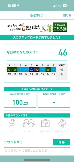 こんばんは みなです😻✨ 46でしたー! 最近では上出来👏 ドライバー安定してたのと アプローチが全然マシでした! ただめっちゃ寒かったー! もう冬でしたほんとに! だって白い息でたよー!😇 明日もハーフ行くので続けていいスコアだといいなぁ