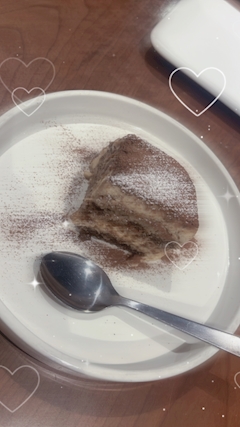 こんにちは🌷.* うたです👸🏻🩷 女の子の前だったからか甘いもの欲がすごい🍩🍨🍧🍦 写真見返してたら前回なかよしさんと行ったイタリアンで食べた ティラミスの写真出てきてまた食べたくなった💕 ここのティラミスがちで美味しかった😾👍🏻🤍