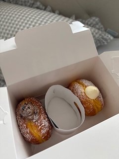 おはよお ゆうみです! この前美容院終わり 生ドーナツ買いに行った🍩 ずっと食べてみたかったから 念願すぎる🥹🥹🤍 1個400円とかして たか!っておもったけど クリームパンパンでうますぎた😍🤍 ゆうみさんはチョコより カスタードホイップ派だたー! またたべたいなあ🥹 でわ