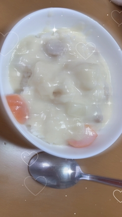 こんにちは🌈♡ うたです👸🏻🩷 こないだ実家帰ったとき前日の夜ご飯だった ママのシチューあって激アツすぎた🥺❤️🔥❤️🔥 我が家はシチューにご飯派なのでしっかりご飯にかけて食べました🍚💕 ひとり暮らしだとカレーとかシチューとか 1回で作られる量が多すぎるからあんまり作らないんだよねえ🥹 とても美味しかったです🤭❣️