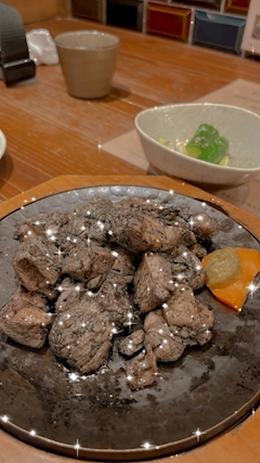 やほん ゆうみです! この前やきにくつれてってもらたー! ひさびさの牛ざんまい🤍 タンとホルモンと、ステーキとか、 いろいろたべた🤍 焼肉屋さんで初めて軟骨たべたんだけど こりこりしてておいしかったー!!!! けどいちばん美味しかったのはやっぱ たん!!!!! みんなは焼肉でなにがすきー? でわ