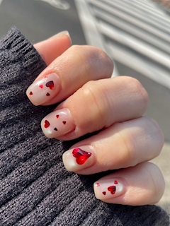 おはようございます☀ ひまりです🌻 金曜日の朝にネイル変えてきたー!! バレンタインネイルにしたんだけど、超可愛い感じになった〜💝 元々する予定だったやつからその場で変えていい感じにしてくれるネイリストさんに感謝✨ みてみて〜!
