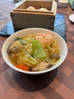 おはようございます みなです😻✨ 中華食べ行った! 中華ってまじで一品の量多すぎて 少人数でいくと全然色々食べれんから悔しい! 理想は6人くらいで行きたいよね🤔 こんときなかよしさんと2人だったかつ 2人とも若干二日酔い気味で万全の体調じゃなかったので 麺2人でひとつシェアして 小籠包とエビ餃子いっこずつしか食べれんかった笑 ほんとは餃子か麻婆豆腐も食べたかったけど これでちょうどお腹いっぱいだったので ほんとに調子乗らんくてよかったです笑 ほんでこの汁そばがめっちゃくちゃおいしかったーー!!! おっきいエビとあわび入ってた🥹💖