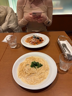 こんばんはあむです🐰 . . この前HARBSの系列店?みたいな . . パスタ屋さんに行きました . . パスタの種類が多くて迷いましたが . . タラコクリームカルボナーラみたいなやつにしました . . 美味しかったですが麺自体があまり好きな歯応えではなく . . 具もなかったので飽きがきました . . 美味しかったですがね^^ . . . .