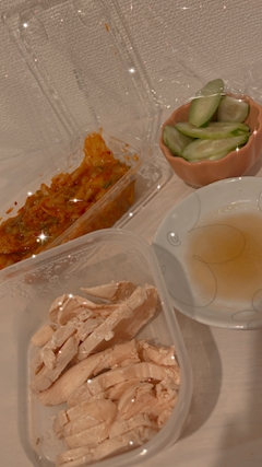 おはよう🥱 うたです👸🏻🩷 最近また久しぶりにサラダチキン食べたくなってつくった^_− ☆ 時間はまあまあ掛かるけど火使わないし意外と簡単‼️ サラダチキンとキムチをきゅうりに載せてごま油塩つけて食べるのがち美味い🥹👍🏻 ダイエット飯にもいいしみんな騙されたと思って試してみてほしい🖤