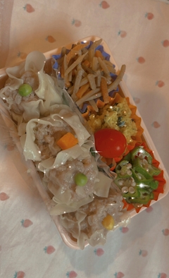 こんにちは🌈♡ うたです👸🏻🩷 またお弁当記録です🍱✍️👩🏻🍳 今週は中華weekなので焼売つくりました👩🏻🍳❕ 1回作ったことあるんだけど今回も天才的に上手くできた🙂↔️💜 つくりすぎたので週末にもりもり食べます😀🫶🏻