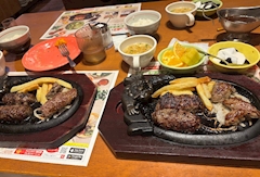 やほん ゆうみです! この前ブロンコビリーいってきた🥩 あんまりいったことなかったから うれしーい!!! ステーキとハンバーグでまよって、 どっちものセットのヤツにした🤭🤍 けどお腹いっぱいでらなちに あげました笑 ブロンコビリーの塩おいしくてすき! ハンバーグもステーキも、 塩で食べる派😌 また行きたいなん! でわ