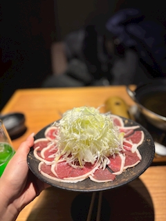 こんばんわ ゆうみです! この前げんず連れてってもらいました^^ 季節のやつエビやと思っとったら 鴨だったー!!! 初めてかも食べたけど 臭みなくて 美味しかった🥹🥹 安定にタンしゃぶも豚しゃぶも おいしくて 〆のラーメンもおいしかった😭 ごちそうさまでしたん でわ