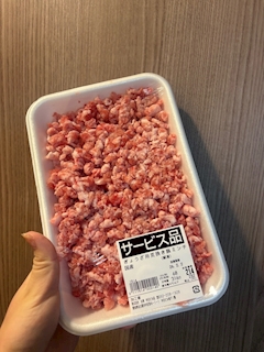 こんばんはあむです🐰 . . この前ふらっと寄ったお肉屋さんが . . めちゃくちゃ安かったです!! . . セール中とは書いてあったけども!!! . .なのでミンチと鶏もも肉買いました . . ありえん安さしてた鶏もも肉は写真撮り忘れました . . . .