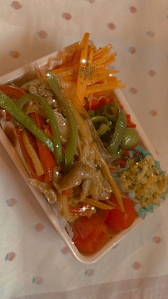 こんにちは💜🫶🏻 うたです👸🏻🩷 今週のお弁当日記🍱📖☡✍ 週始めの月曜日は青椒肉絲🫑🐷 ピーマンがたくさん余っててもうしにかけだったからピーマン消費レシピ👩🏻🍳🌟 久しぶりに作ったけど美味しく出来て満足🤭💕