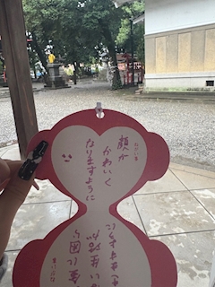 こんばんはあむです🐰 . . この前日吉神社に行った時に . . かわいい絵馬をかいたのですが . . 願い事書くところが2つあって . . 前回で書いたとこの反対のところは . . . . これにしました . . かわいい顔になりたいけど整形費用がない、、😢 . . 神頼みっ🙏 . . . .