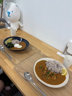 こんばんわ ゆうみです! この前あむちゃんと 名駅の近くで カレー食べてきました🍛 1年中かき氷が食べれるお店なんやけど 寒くてカレーだけにした! ガーリックシュリンプのカレーと 温玉野菜カレーにした! キーマカレーみたいな感じで おいしかった〜! カレー大好きだから たべれてうれしい🙂 またいきたいなー! みんなもいってみてねん でわ