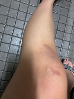 やほん ゆうみです! この前営業終わり すこしよってて こけてあざできた😀😀 まじでどじ。 しかも普通にいたいしー🙂🙂🙂 久々にこけた🤣🤣 まだ店の中でよかった、、 外とかでこけたら しんぷるにはずいし、笑笑笑笑 営業終わりでお客さんもいなかったから 助かりました😼😼 でわ