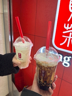 こんばんわ ゆうみです! この前あむちゃんと おひるごはんいったあと ごんちゃいてきた! 久々にタピオカのんだ🤣🤣 黒糖ミルクティーおいしすぎ🤤 ミルクフォームも追加したんやけど あまじょっぱくて うまかた👍 タピオカ飲むと高校時代思い出す🤣🤣 またのみたーい でわ