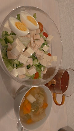 おはよう うたです👸🏻🩷 昨日から女子力高めな女が食べてそうなご飯たべてます 夜ごはんは軽めがいいらしいので気をつけようと ポトフは週末に大量に作り置きしました やっぱウインナー入ってるだけで肉の出汁が出てさらに美味い🥹🤞🏻 この透明な大きいサラダボウルお気に入りの食器😻