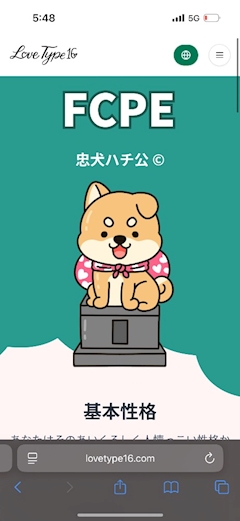 こんばんわ ゆうみです! この前最近流行りの ラブタイプやったー! うちは忠犬ハチ公だった🐶 なんかみたら結構あてはまってた🤣🤣 ティックトックとかツイッターで、 忠犬ハチ公はやばい恋愛しがちってかかれてて おもろかった笑笑笑 まあ過去の恋愛 やばいやつしかないけど😃 みんなはどれだった? でわ