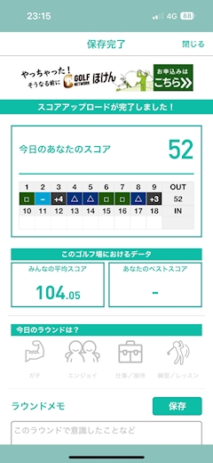 こんばんは みなです😻✨ 今日は初めてナイター回ってきました! スコアは52でいつも通りでした笑 ちょっと肌寒かったけど いつもと違う感じでプレーできて 楽しかったー✌️⭐️ +4、3はどっちもOBでした( ; ; )