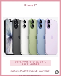 こんにちは^ᴗ ᴗ^♡ うたです👸🏻🩷 毎年9月にAppleからiPhone新作出てるけど 今年でもう17らしい😳😳びっくりすぎ、、、 わたしまだ13なんだけど😅今回めずらしく2年で買い替えてない✌🏻 新色のラベンダー可愛い💜どうせケースして見えなくなるのに可愛い色欲しいのなんでだろ 笑