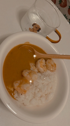 こんにちは🤭🫶🏻 うたです👸🏻🩷 ずっと気になってた無印のカレーはじめて買ってみた🍛🥄 エビクリーミーカレーにしたんだけど全然エビの味しんかった😂😂 とゆうか普通のレトルトカレーとちがいがあんまりわからんかった😮💨笑笑 エビトッピングしたらそれはばか美味しかったです🦐笑笑