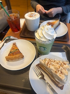 こんにちわ! ななです! 甘いの食べたくなってスタバきたー 前売り切れてたホワイトモカケーキあった!、、! めちゃめちゃおいしかったおすすめ🤍
