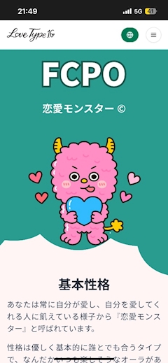 こんにちは! なるです🙌🏻❤️🔥 最近みんなやってる奴 私もやってみたんだけど なんかみんなのとちがって 可愛くないのでてきた😭 恋愛モンスターてなに、、、 なんか飢えてるみたいでやだ笑 みんな可愛い動物だったのに 何で私モンスターなの!? ヒス起こしそう普通に まあいっか。 でも結構当たってたんだよな すごいこれ笑 でわでわ なる