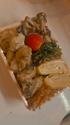 こんにちは^_− ☆ うたです👸🏻🩷 昨日疲れ切っててなんにもせず寝ちゃったんだけど いつもより早起きしたから無事お弁当もつくれました👩🏻🍳💫💫 夏らしく大葉とレモンの唐揚げにしました🐔🍋 一週間のメニューは大体決めててあとは明日なにつくろうかなって気分でつくってる😗🫶🏻 副菜は基本的に作り置きで詰めてる🤭楽ちん時短 午後もがんばろう^ᴗ ᴗ^♡