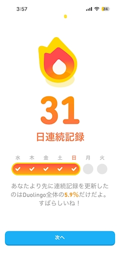 こんにちは ほなみです 皆さんDuolingoって知ってますか?? 言語を学べるアプリで、 毎日数分だけゲーム感覚で勉強できます𖦹𖧉𖦹 先月韓国行ってから 韓国語話せるようになりたいって思って、 始めました♥.♥ ついに1ヶ月!毎日継続に成功👏 この調子で頑張ります💪 ほなみ