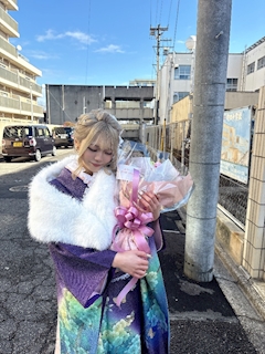 こんばんはあむです🐰 . . この前らなちの成人式に . . ゆうみんと行っておめでとうしてきました . . 花束渡せて良かった🥰 . . ママ振りめちゃくちゃ似合ってて可愛かったよらなち〜!! . . 金髪も𝑺𝑶 𝑮𝑶𝑶𝑫______💖 . .. .