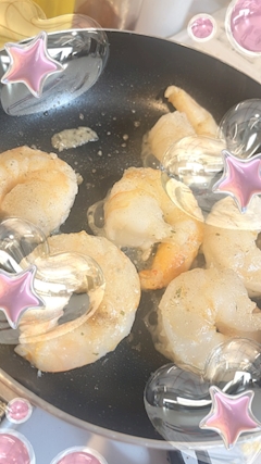 こんばんは💛 うたです👸🏻🩷 家の近くのスーパーでたまに売ってるでっかいエビ🦐🍤 まじですきで売ってると毎回買う🥹🛒💭 オリーブオイルとたっぷりのにんにくと塩胡椒でたべてます😀 臭いとかはしらんしきにしない😇にんにく美味い🧄