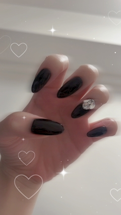こんにちは🙂↕️🎀 うたです👸🏻🩷 昨日ネイル替えてきたあ 昼仕事始めてからオフィスネイルーって感じできをつけてたけど やめました😀いい子でいるのはやめたんだあ オフィスネイルとか知らんしいままですきに生きてきたからこれからもそうする😇 まじで可愛いです黒に大きいVカットストーン🥹🖤