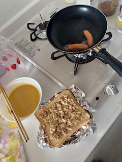 こんばんは らなです このまえ優雅な朝食作りました🍞 朝食といえばパンですよね^^ ツナマヨパン😆😆😆 ウインナーも美味しい焼き方してみたナリ たまにはこんな朝もいいですね☀️🌱