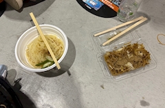こんにちはあむです🐰 この前ゆうみんとらなちとフェスに行った時 お腹がすいたので屋台でご飯買お〜となりました 屋台は本当に色々な種類のご飯があったので 何買おうか本気で迷いました クソほど暑かったので冷麺は食べたいじゃないですか でもせっかくの屋台ですよ!?!!? 迷いました なので どっちも買って3人でわけました 冷麺冷たくなくてぬる麺だったし麺ばりくそ硬かったです
