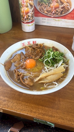 こんばんは みなです😻✨ 徳島ラーメン食べて来たー! インスタで一番出てくる有名どころは 2,3店舗全部定休日だったので ちょこちょこ見かけた王王軒というとこ行ってきました! とりあえず店内がくっっさい笑笑 見た目に反して意外と後味あっさり食べれて美味しかった✌️ なんといってもこの生卵に絡めて食べるのが最高に美味しかったです🥹 わんわんけん