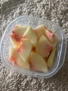 こんにちは みなです😻✨ 1週間くらい前に買った桃がようやく食べれるかな?くらいになったので切ってみた! やけどまだちょっと早かったかな笑 切った感覚からもうかためだった笑 でもでもでも!! 甘かったのーー!! 甘くて美味しかった💖💖💖 2個入り買ったので もいっこはもうちょっと置いてじゅくじゅくで食べたいと思います ではまた!