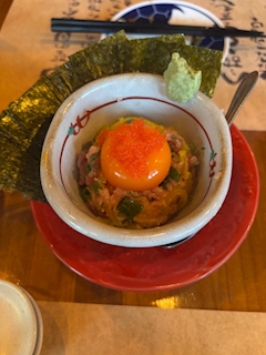 こんばんは みなです😻✨ こないだ山梨の居酒屋で食べたとろたくが美味しかった💖 あのーーー私の大好きな卵黄が乗ってて!!! これ案外ありそうで出会ったことなかった組み合わせ🤔 当たり前に合っててめっちゃ美味しかった🥹 てか卵ってなんでも合うよね でも二日酔いのときだけ厳しいんだよね、、、 そんなこと言っても卵大好き人間なので トロたくx卵黄 最高でした👍