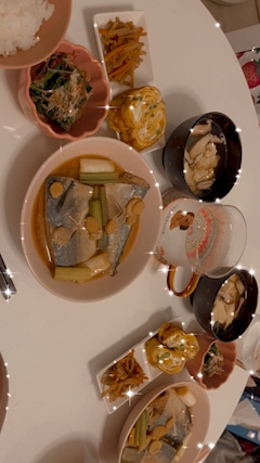 おはよう☺️☀️ うたです👸🏻🩷 弟があそびにきたときにおもてなし料理つくりました👩🏻🍳❣️ ハンバーグ作る予定で買い物行ったけど 鯖が半額になってたから急遽サバの味噌煮メインの和食料理に変更した👍🏻 久しぶりにサバの味噌煮作ったけどやはり和食最高🙆🏻♀️💕
