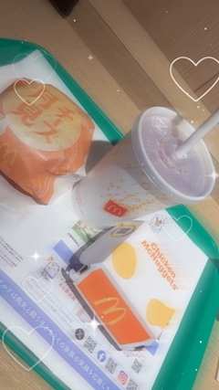 こんにちは^_− ☆ うたです👸🏻🩷 マックの月見バーガーやっと食べれた🎶😗 ぷるぷるたまごと濃厚チーズにオーロラソースが最高すぎる😀❕ あとナゲットのソース瀬戸内レモンペッパーめちゃくちゃ美味しかった🍋🥹💕