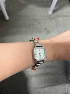 こんにちは! なるです👊🏻🤍 お昼の職場が アクセサリーショップで 自分でアクセサリー作れるんだけど 案内したら、あとはもう 自分で作ってもらうだけだから、 基本暇なのね😐 だから、空き時間に 自分で作ってたんだけど、 めちゃ可愛いのできた‼️ 凄いかわいくて めちゃかわいいのよwww 可愛いしか出てこない笑笑 自分の好みの時計できたから とっても満足🤍 でわでわ なる
