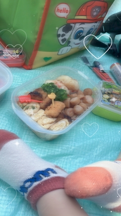 こんにちは🍒´- うたです👸🏻🩷 こないだの3連休にお姉ちゃんと甥っ子と3人でピクニックにいきました🙆🏻♀️💖 近くの公園なんだけど結構広くてめっちゃいいんだよねえ^_^ 夏ほどじゃないけど天気よくて割と暑かったから 途中バテてテントでお昼寝してました😴笑笑 お弁当はお姉ちゃんと朝から一緒につくったよ~🙂↕️💕 めちゃくちゃよき休日すぎた^_− ☆