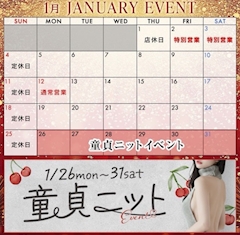 こんばんは🥱 ひまりです🌻 1月のカレンダーでたよー!! 今日はトラネスお休みですので、お間違いなく! 今月は童貞ニットだってー🧶 1月もたくさんのご来店お待ちしてます🫡