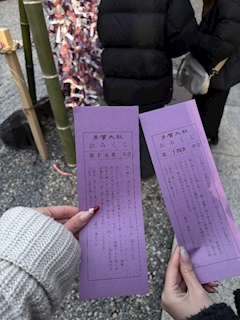 やほん ゆうみです! 滋賀の多賀大社いてきました⛩ 去年友達のストーリーでみて ずっと行きたいって思ってて 友達と行ってきたー!!! 薄着でいったから まじでさむすぎて 帰り発狂してた🤣🤣 名古屋より滋賀の方が 余裕で寒くて しかも風強すぎて 凍るかのおもた笑笑笑 おみくじ小吉だた!! むずかしくてあんまわからんけど 紫でかわいかた😀🤍 でわ